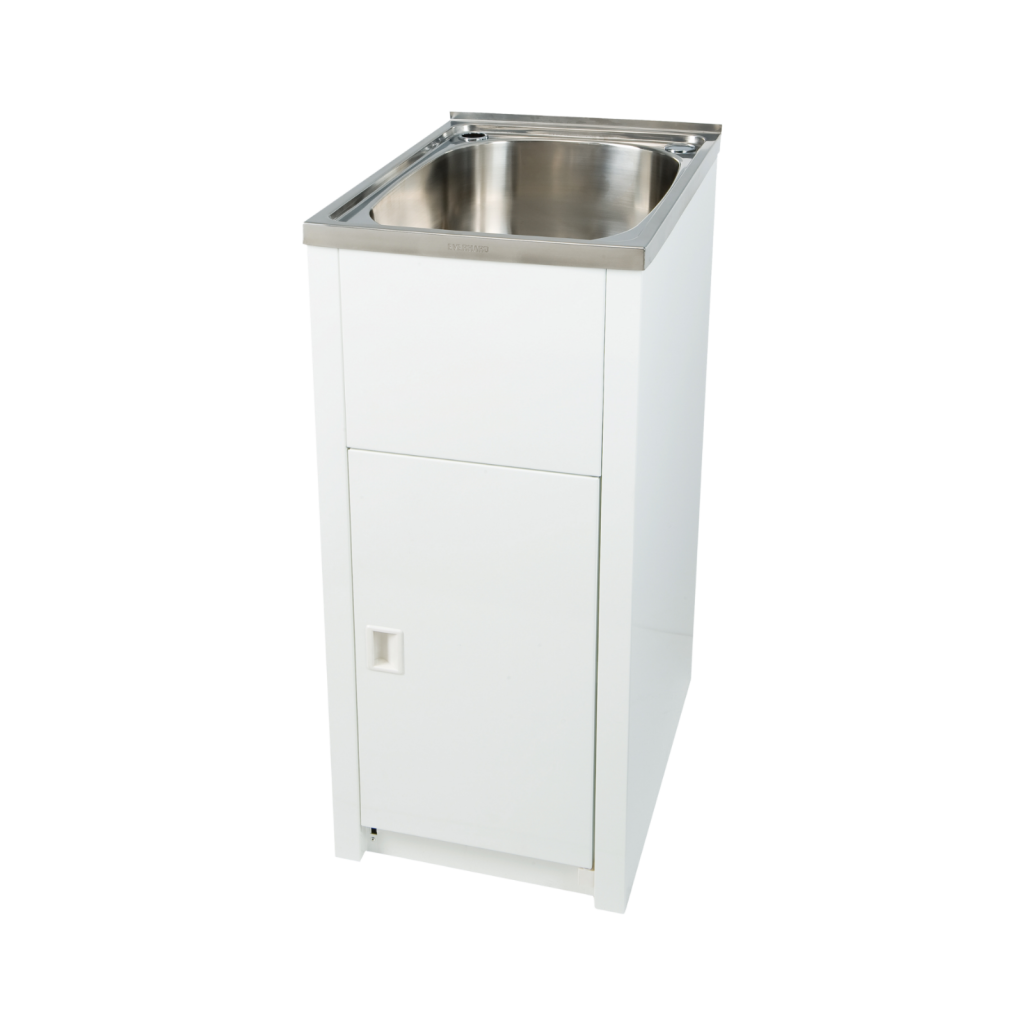 The Classic 30L SS Laundry Unit is a high-quality laundry unit designed for durability, functionality and everyday performance. Our Classic 30L SS Laundry unit is compact and ideal for apartment living. The bowl is made from quality stainless steel and the cabinet is white powder coated to protect the unit from the elements. Our Classic 30L SS Laundry Unit is compact and ideal for apartment living The bowl is made from quality stainless steel and the cabinet is white powder coated to protect the unit from the elements Features and Benefits 30L 304 Stainless Steel Bowl 2 x o42 tap holes Galvanised Steel White Powder Coated cabinet Reversible Door - left or right hand opening applications 50mm plug and waste Chrome Plated Blanking Plug with Nut Single bypass Two washing machine hose holes on each side of the cabinet with protective grommets Overflow option available - view the overflow kit here Warranty: Bowl and Cabinet: It offers reliable performance, a professional finish and straightforward installation, making it a dependable choice for builders, renovators and trade professionals.