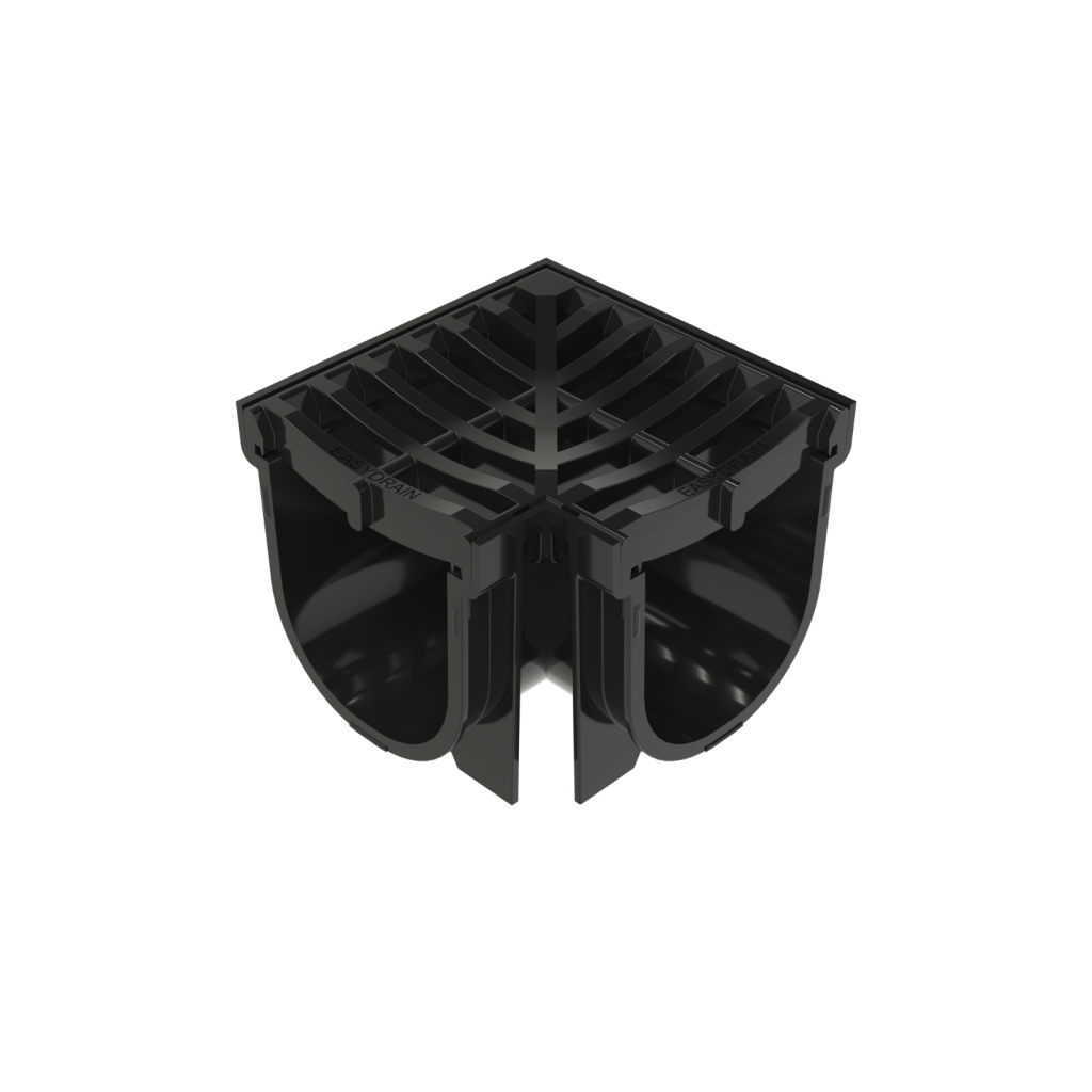 This black polymer corner grate is engineered to complete surface drainage runs by providing a neat and functional corner transition point. Manufactured from durable black polymer, it is designed to withstand outdoor conditions while remaining lightweight for easy handling and installation. The grate’s design allows efficient water entry at drainage junctions and complements surrounding outdoor areas with a cohesive, subtle appearance. Suitable for residential and light commercial surface drainage layouts, this corner grate integrates seamlessly with compatible drainage channels to help manage surface water effectively through bends and corners.